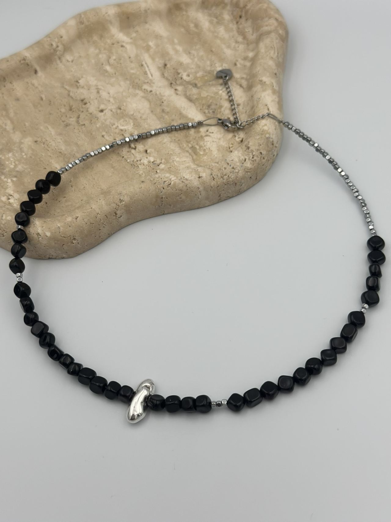 Με μαύρο όνυχα και ασημί πέτρες αιματίτη