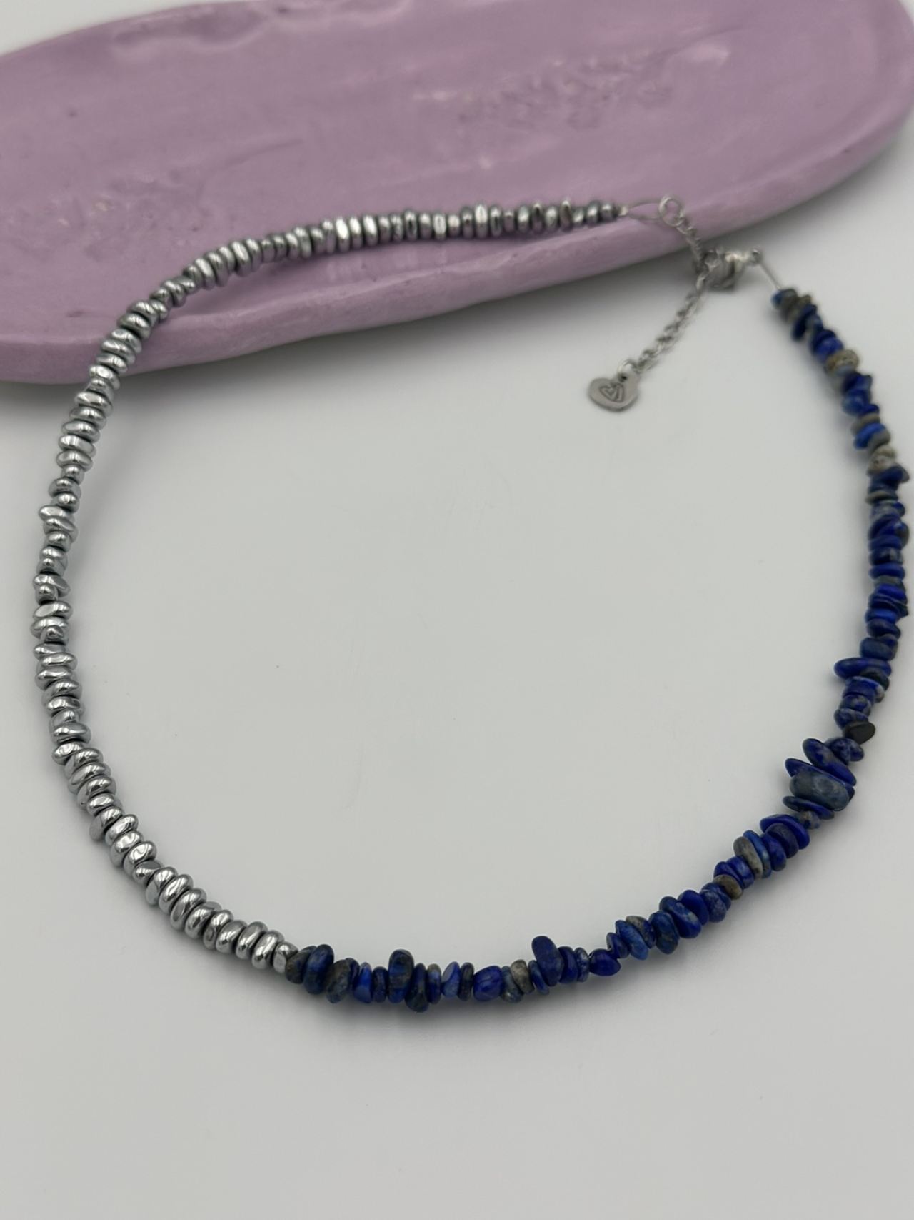 Με πέτρες lapis lazuli και ασημί αιματίτη