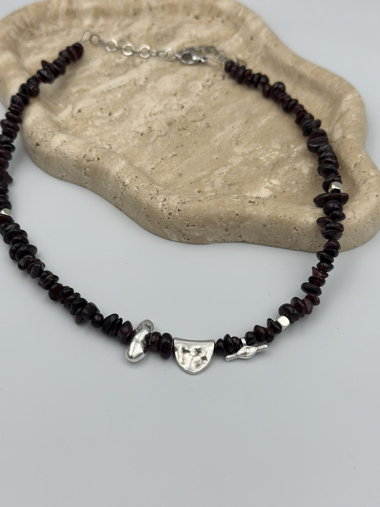 Με φυσική πέτρα γρανάδα και επαργυρωμένα ορειχάλκινα στοιχεία