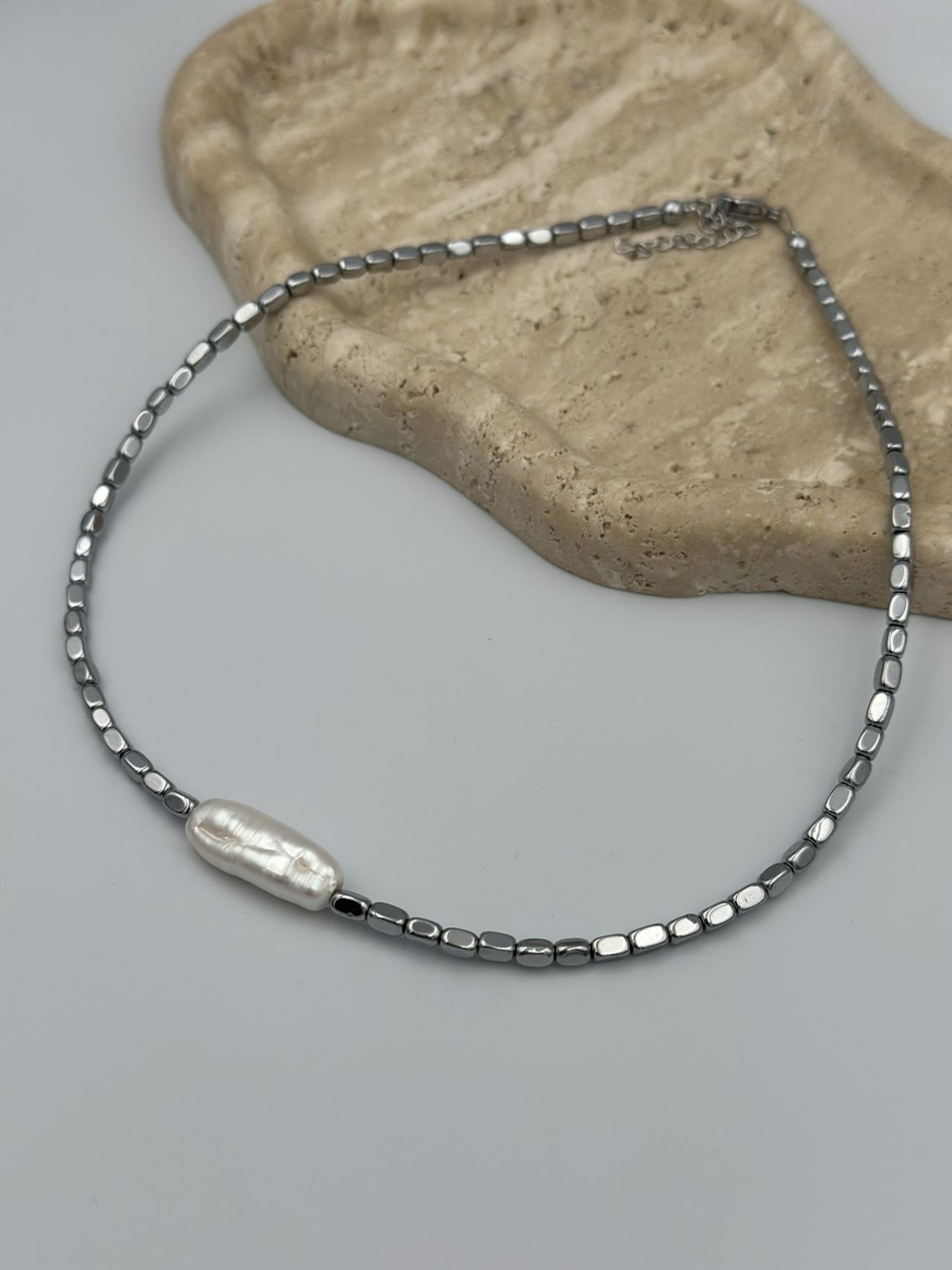 Με φυσικό μαργαριτάρι(γλυκού νερού) και ασημί πέτρες αιματίτη