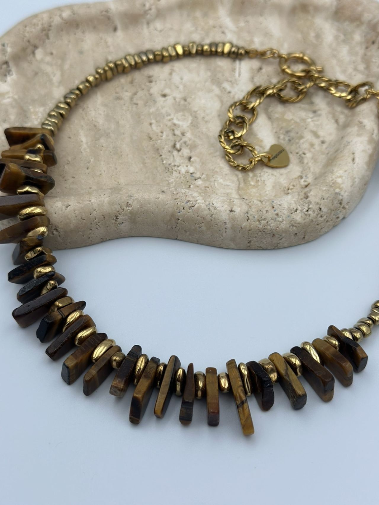 Με Μάτι Τίγρη, χρυσές πέτρες αιματίτη και ατσάλινη αλυσίδα