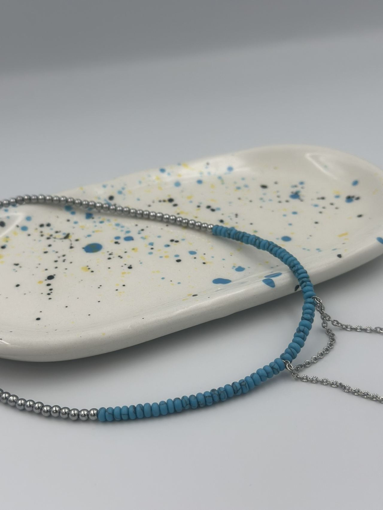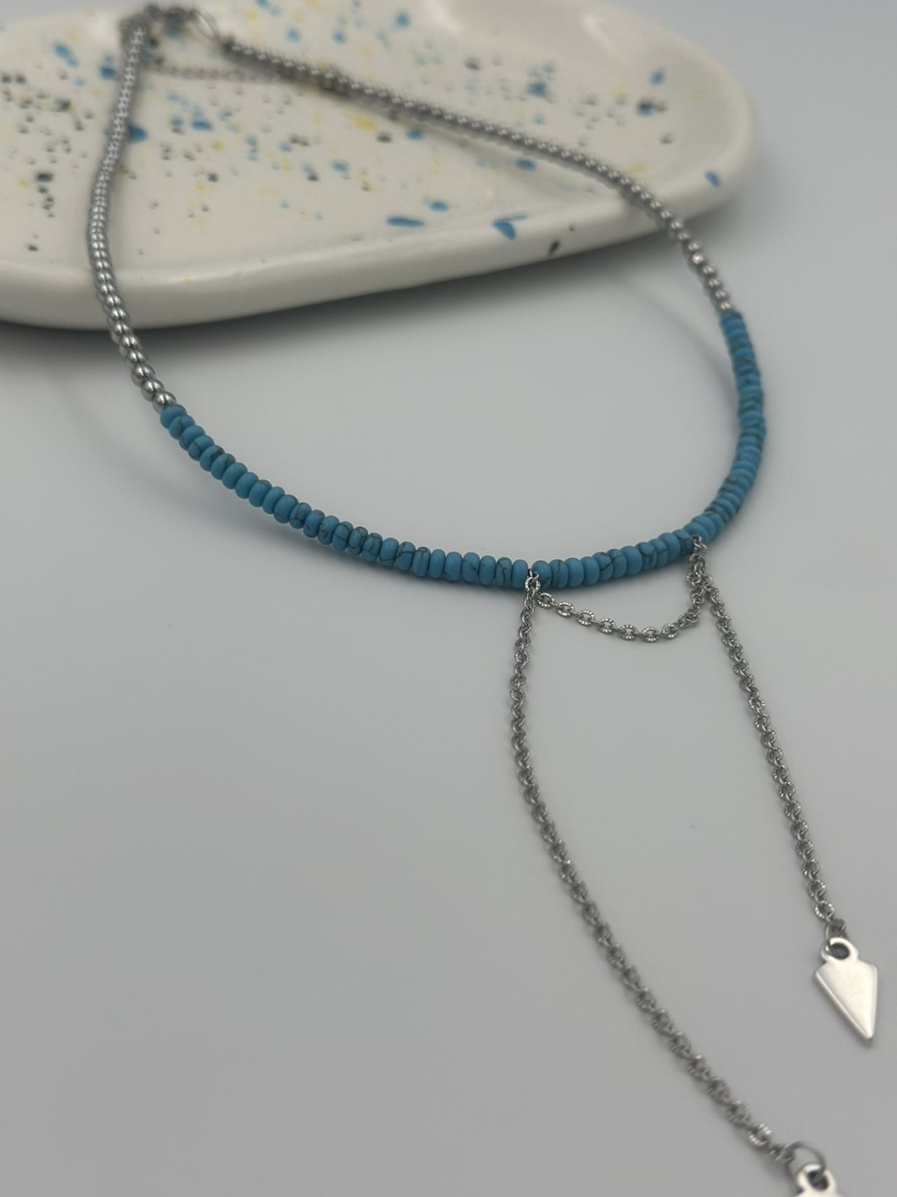 Με ασημί πέτρες αιματίτη, coins χαολίτη, κρεμαστές ατσάλινες αλυσίδες και επαργυρωμένα ορειχάλκινα στοιχεία
