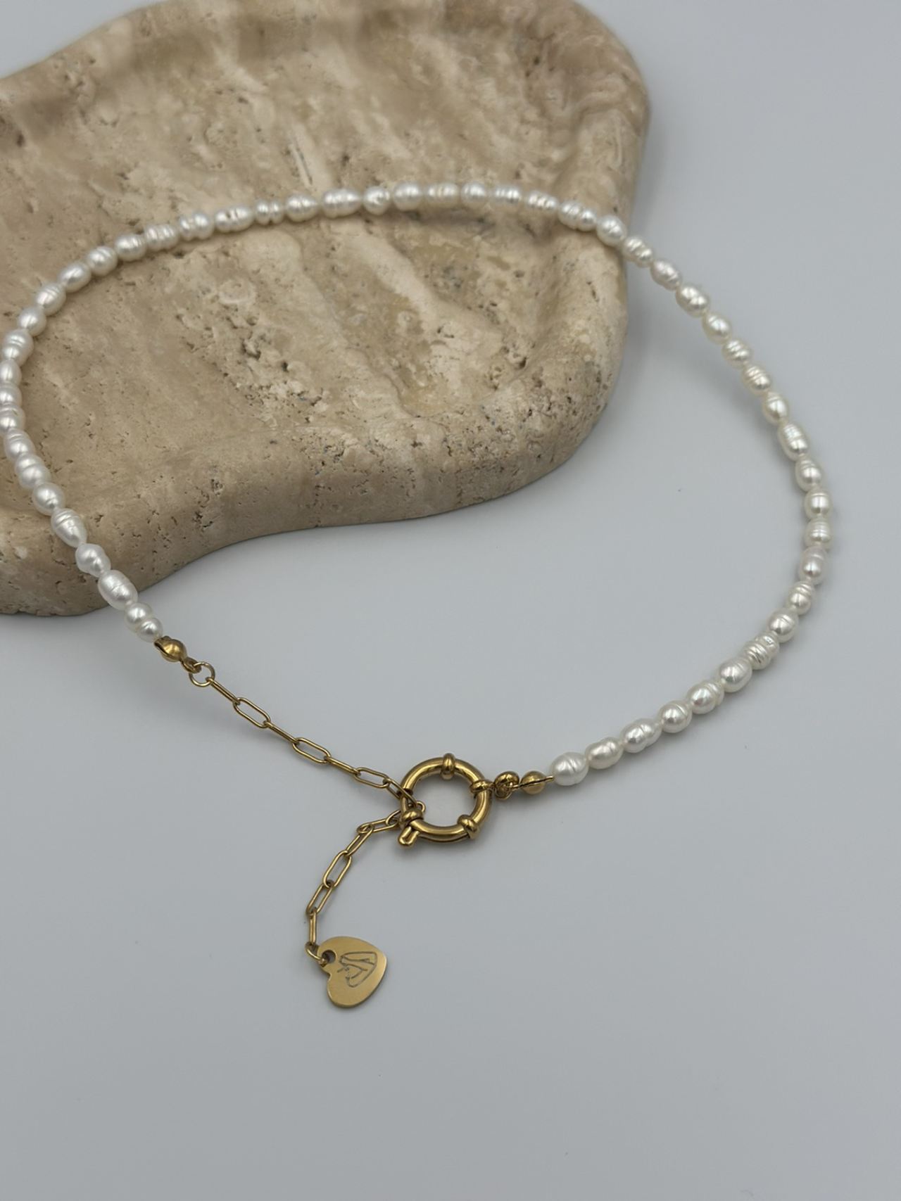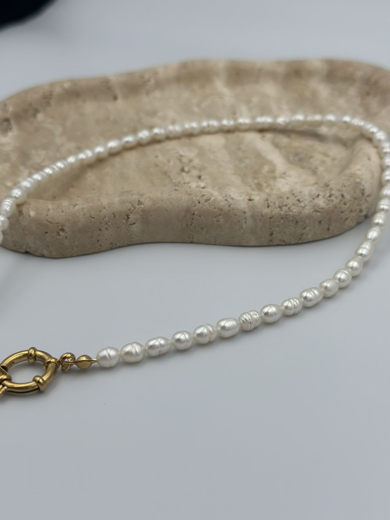 Με φυσικά μαργαριτάρια γλυκού νερού και ατσάλινη αλυσίδα